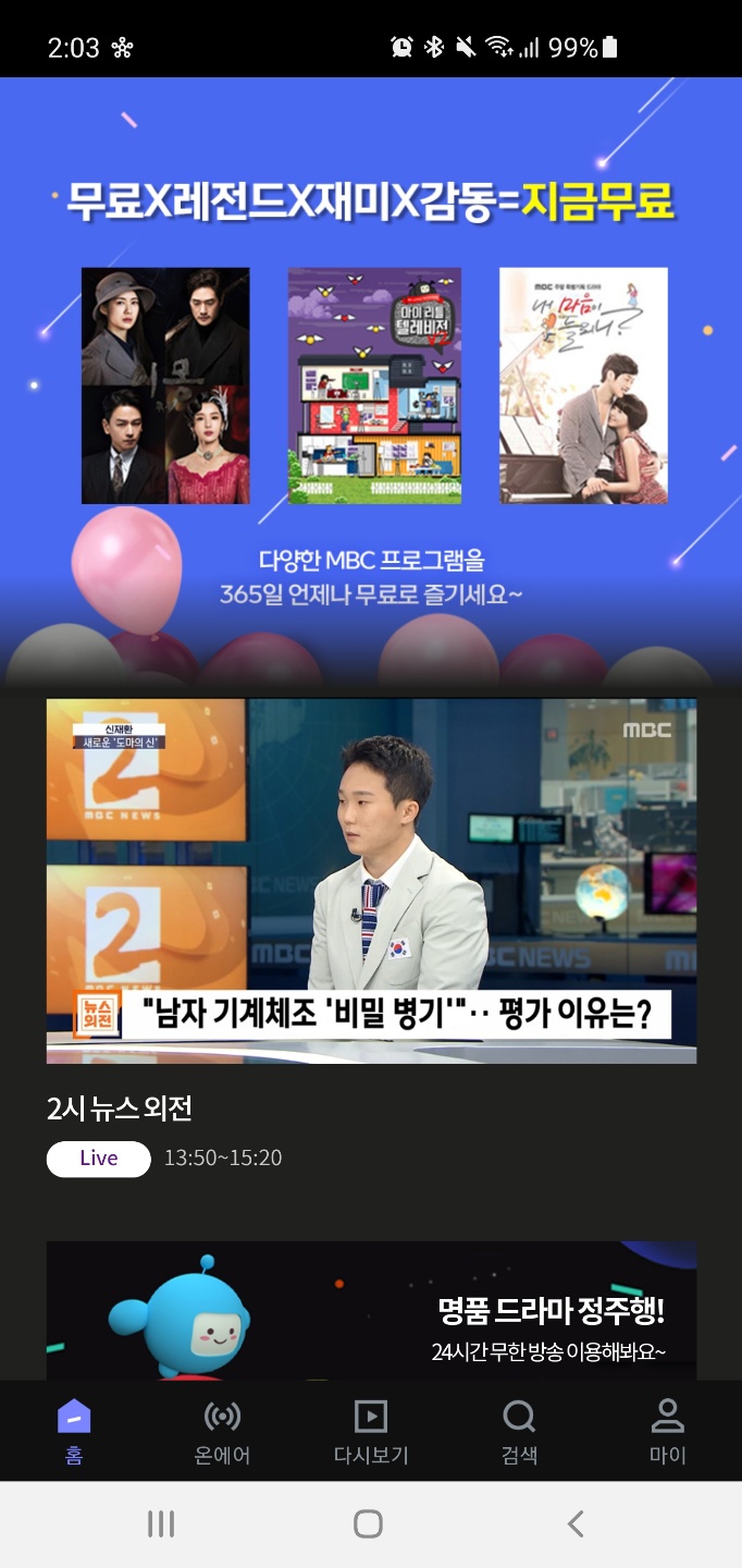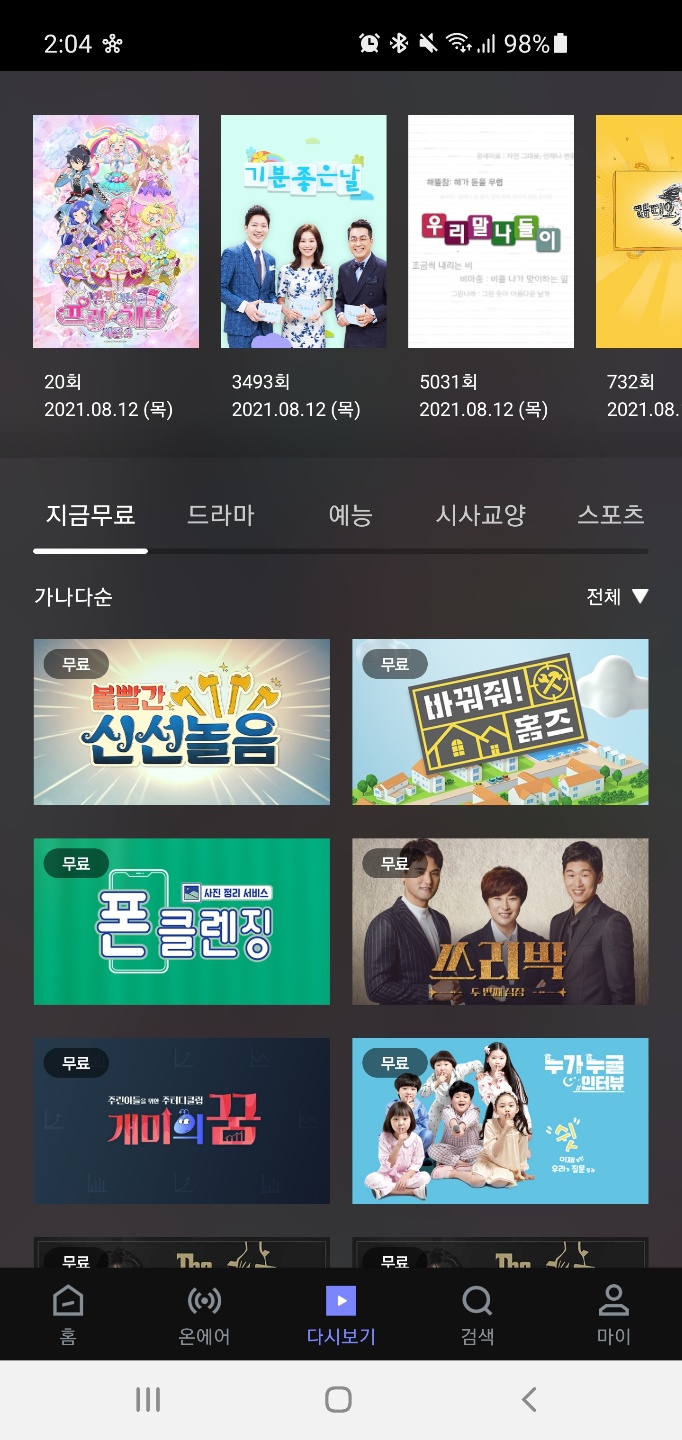 5. 다시보기 탭에서 지금무료 탭을 구현하고 item들이 순차적으로 Lazy loading 되도록 하고 좌측 상단에 무료라는 태그가 노출되도록 구현 (좌측 무료 태그의 경우 drawable에 shape를 선언하여 만듬)